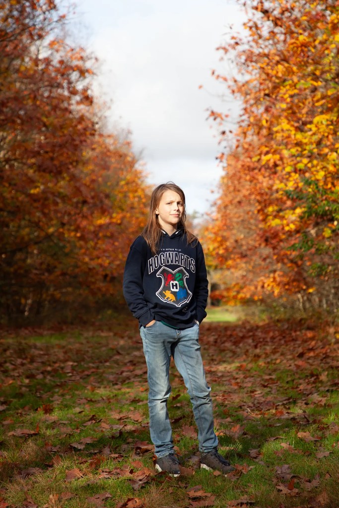 Zoon van Carmen, 11 jaar. Sportief, in de eerste klas van de middelbare school. Houdt van schaatsen en drummen.